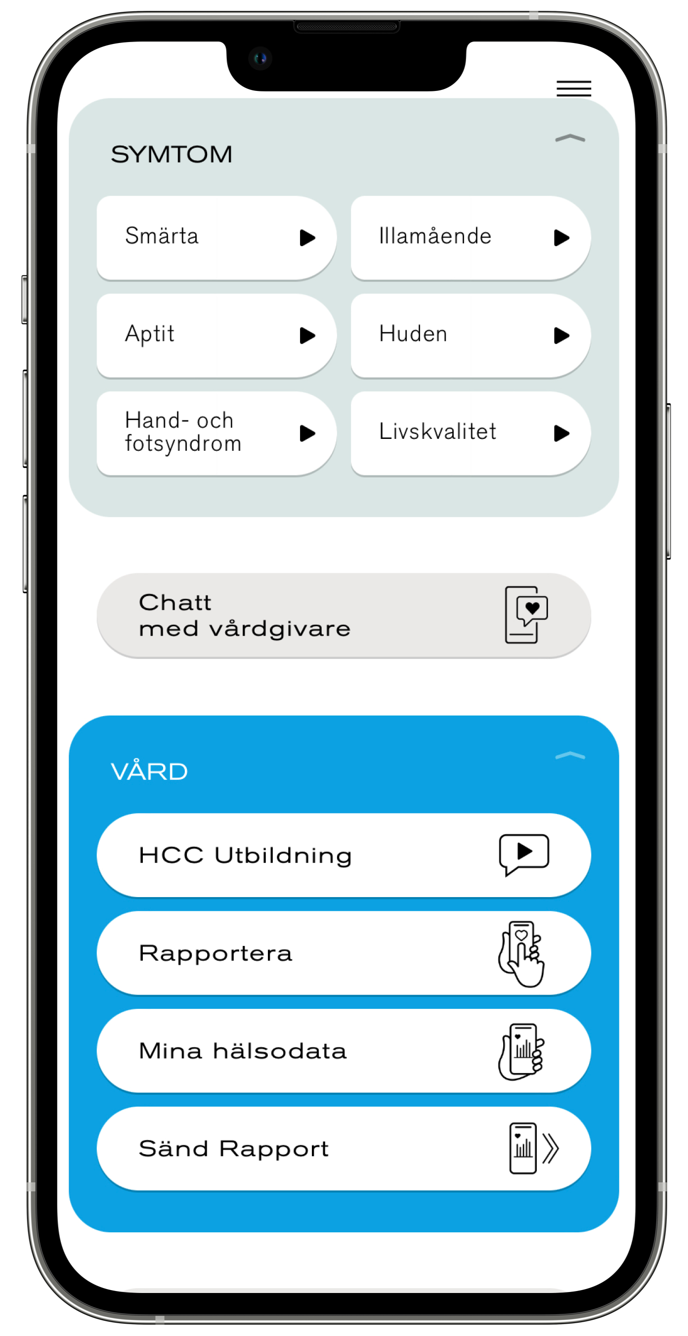 Genom det digitala patientstödsprogrammet för HCC kan både patient och vårdpersonal få stöd genom hela behandlingen. Programmet är fylld med informationsfilmer, livskvalitetsformulär samt egenvårdsråd vid symtom och biverkningar men bygger framförallt på inrapportering av symtom från patienterna i syfte att hjälpa sjukvårdspersonal att ta individualiserade behandlingsbeslut. Det finns också ett inbyggt skyddsnät som larmar vid avvikelser och vårdpersonalen kan enkelt monitorera patientens mående på distans.